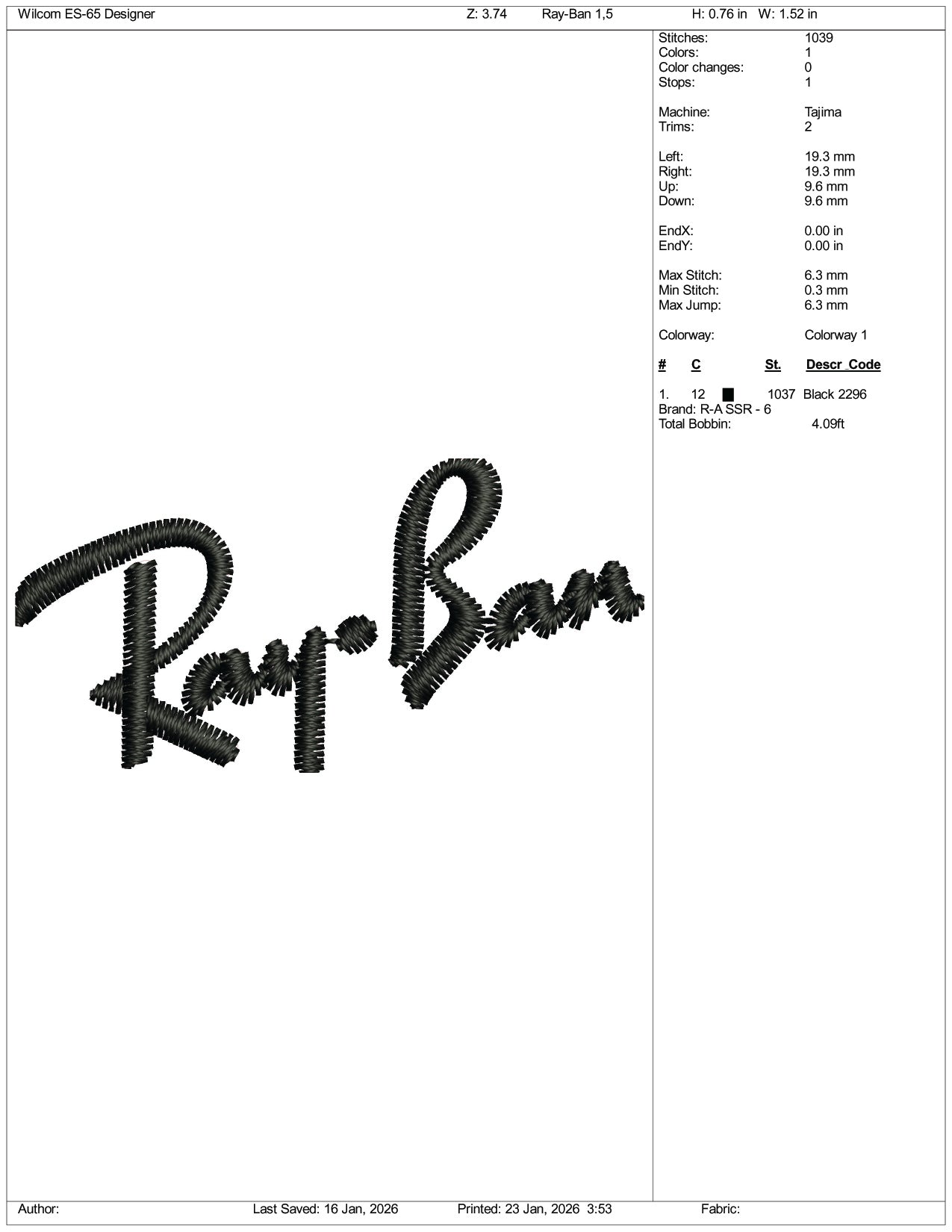 Ray Ban Logo Embroidery Design Files - 4 Size's