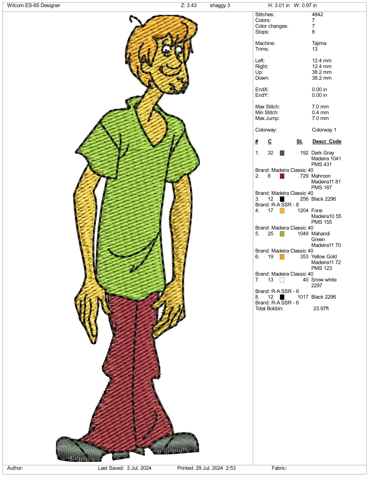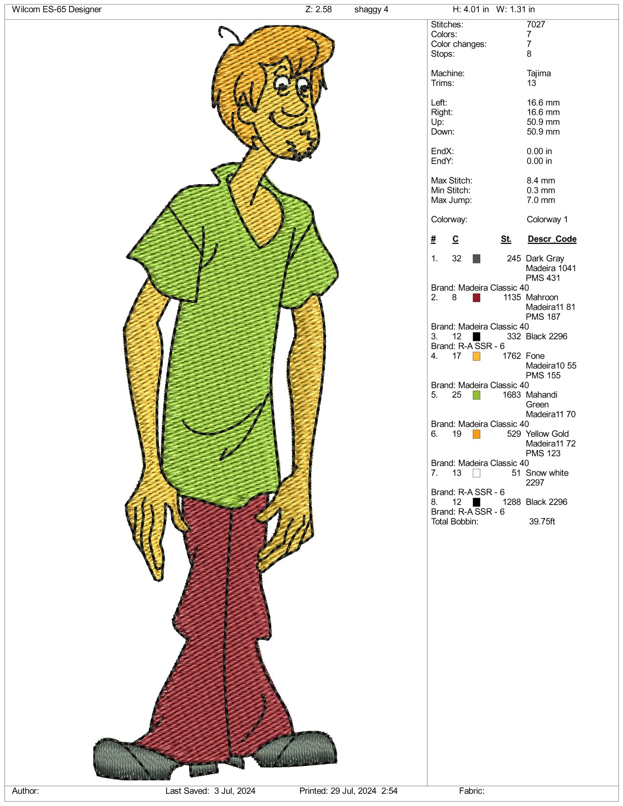 Shaggy Rogers Embroidery Design Files - 3 Size's
