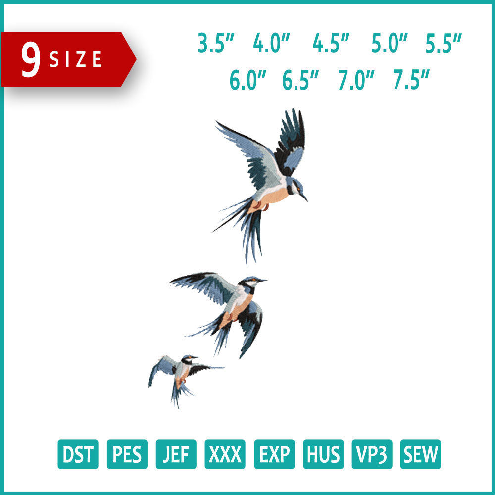 Soaring Swallows Embroidery Design Files - 9 Size's