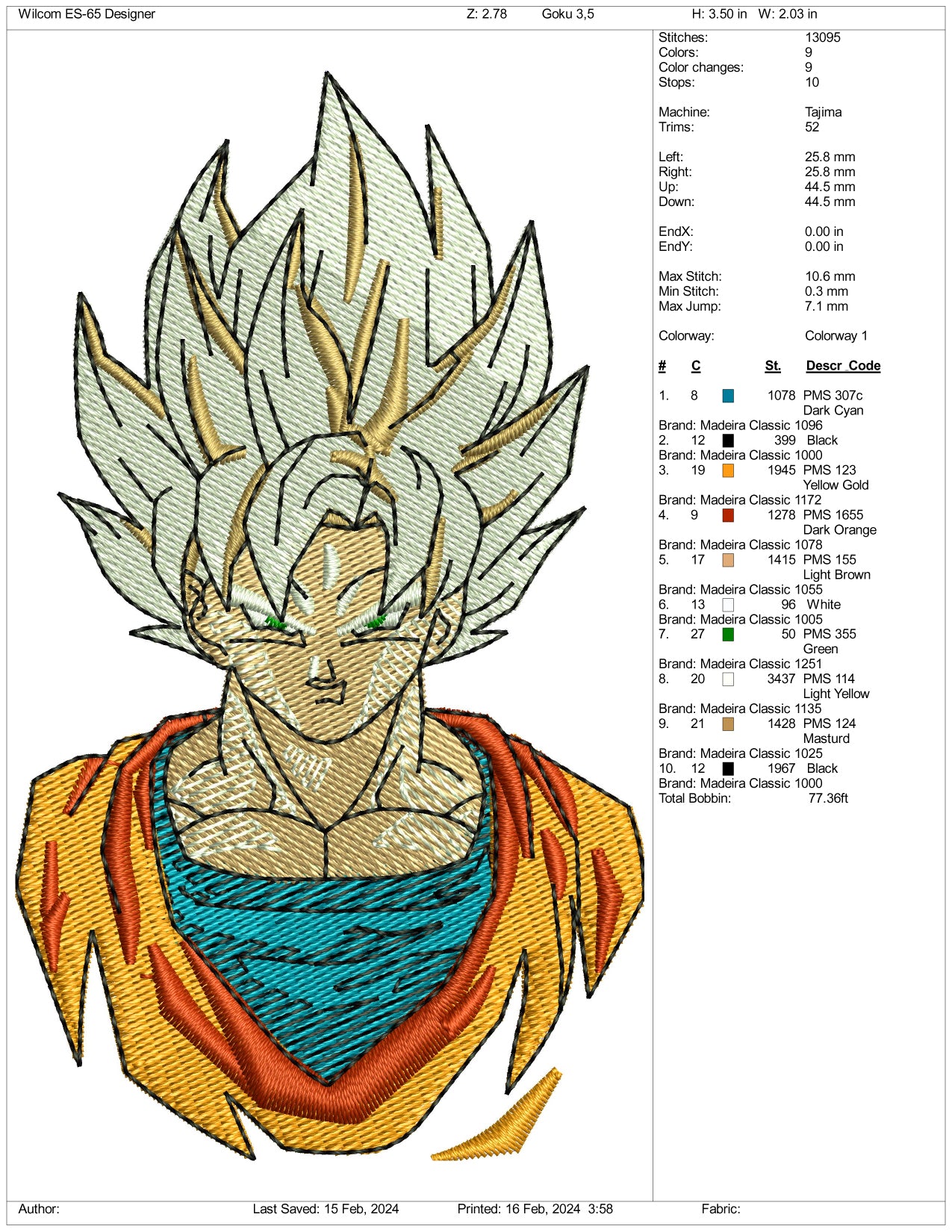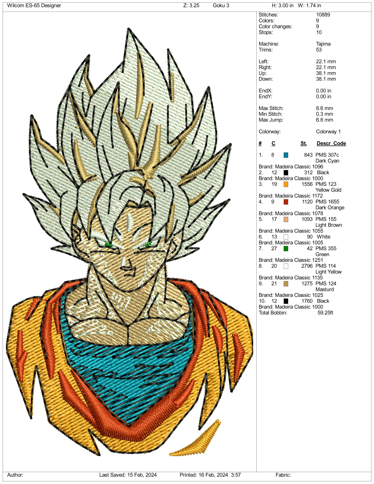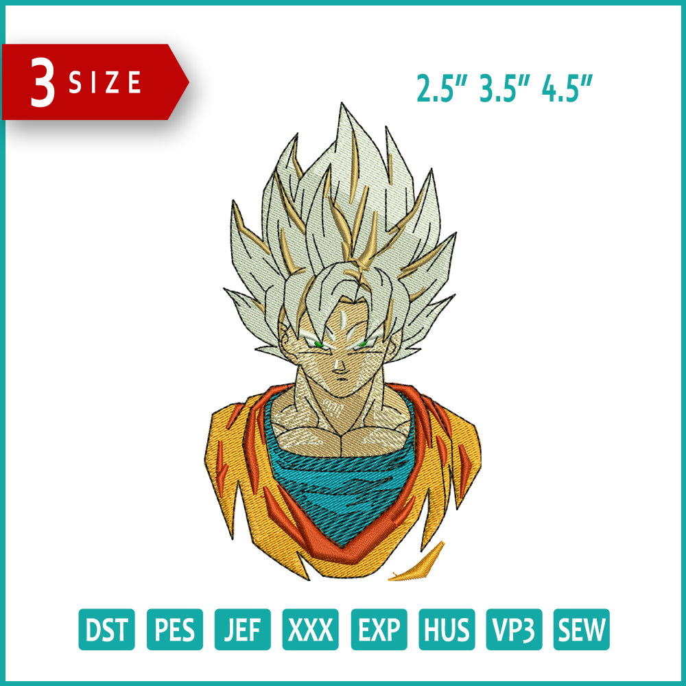 Super Saiyan Goku Embroidery Design Files - 3 Size's