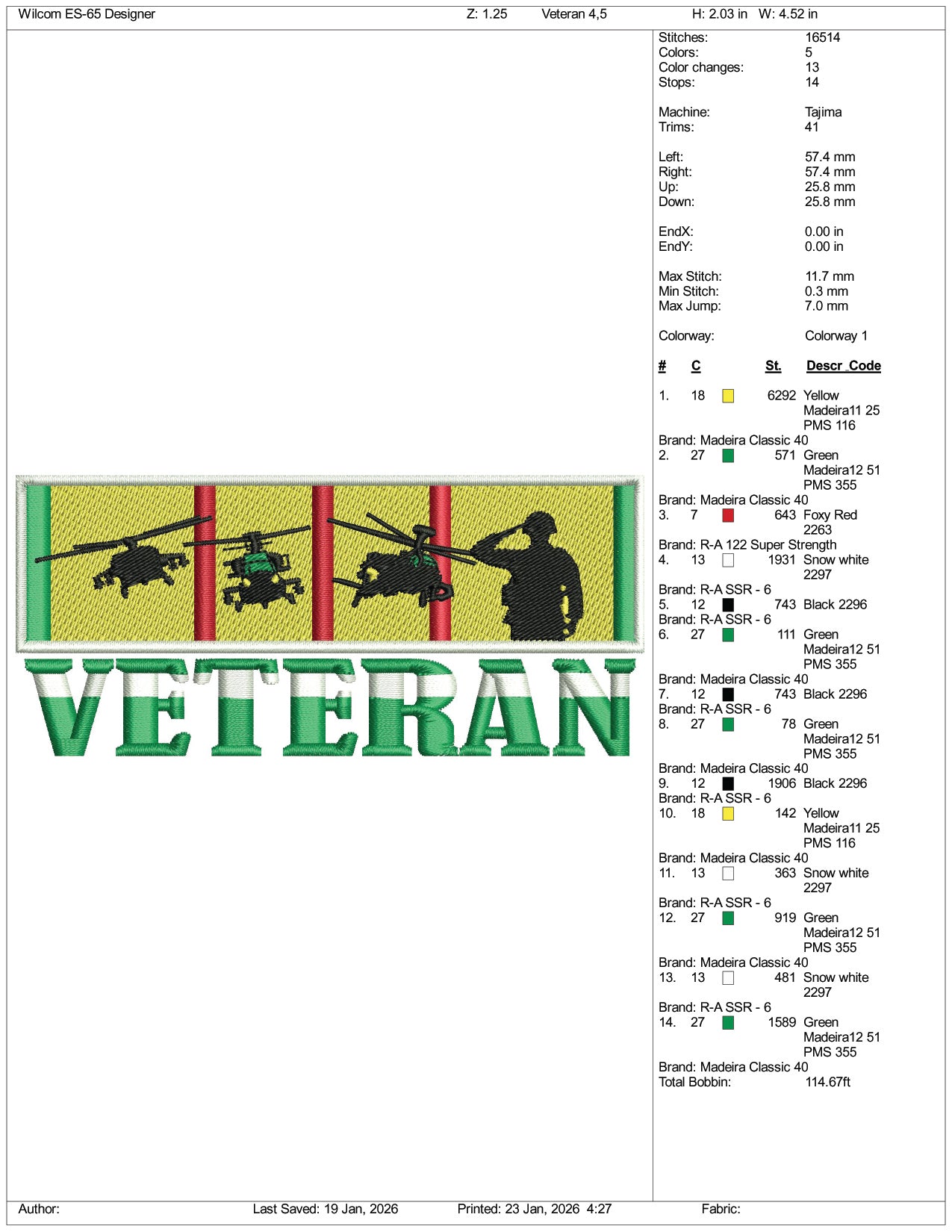 Veteran Embroidery Design Files - 3 Size's