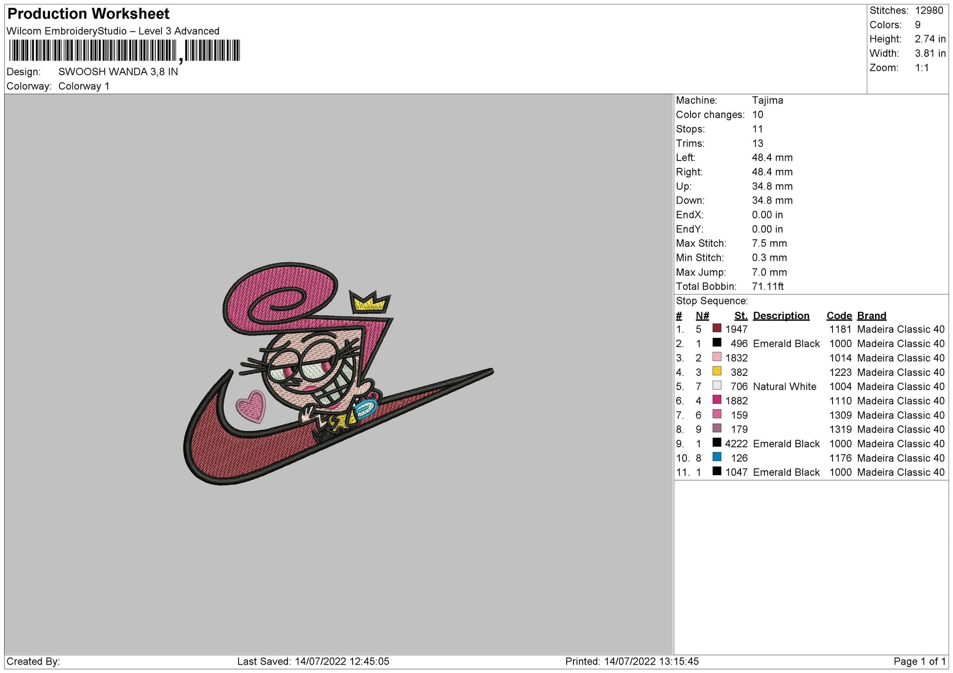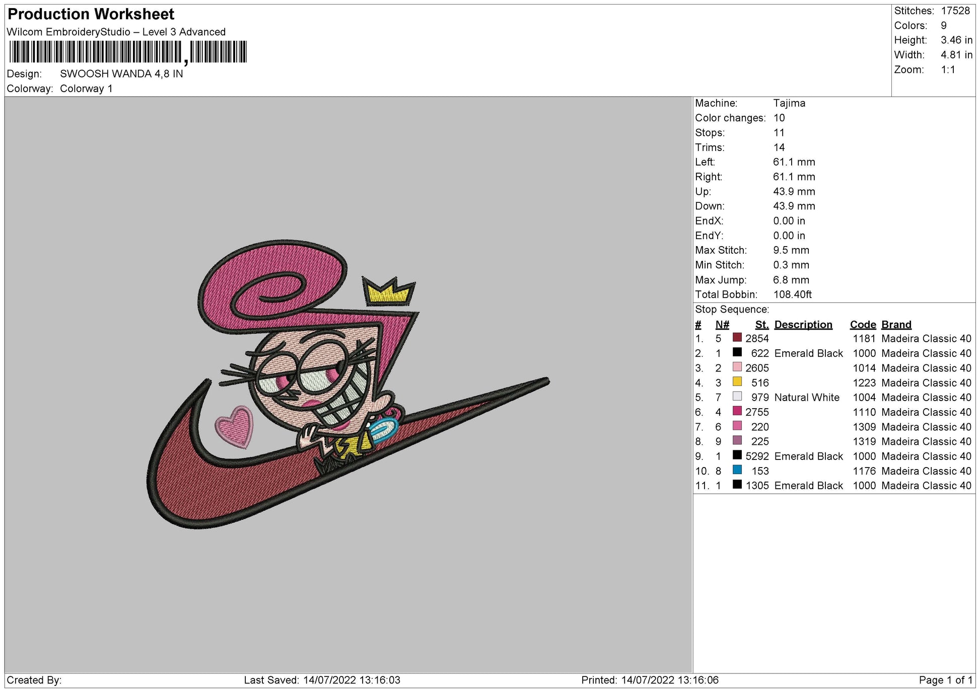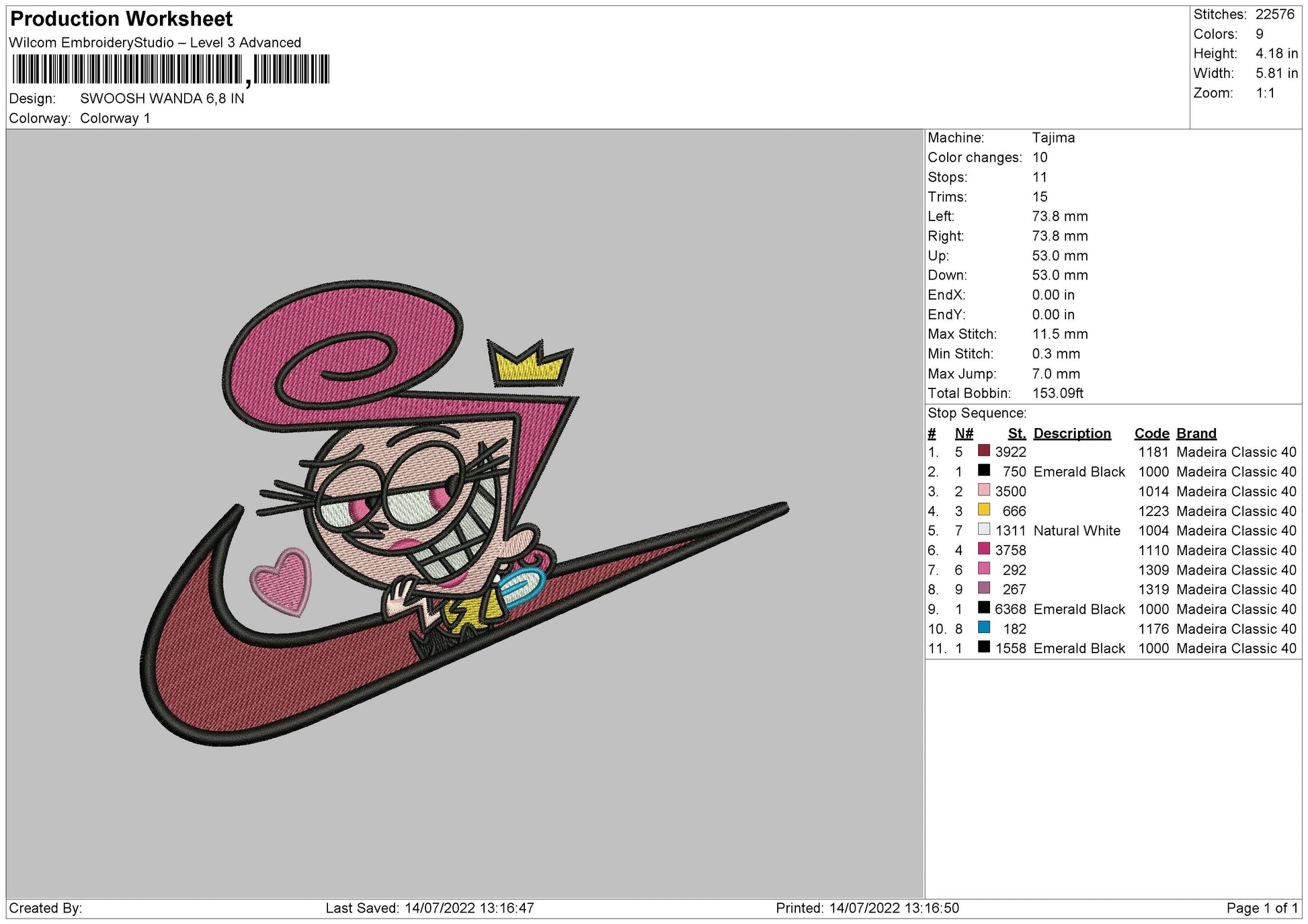 Wanda Swoosh v3 Embroidery Design Files - 4 Size's
