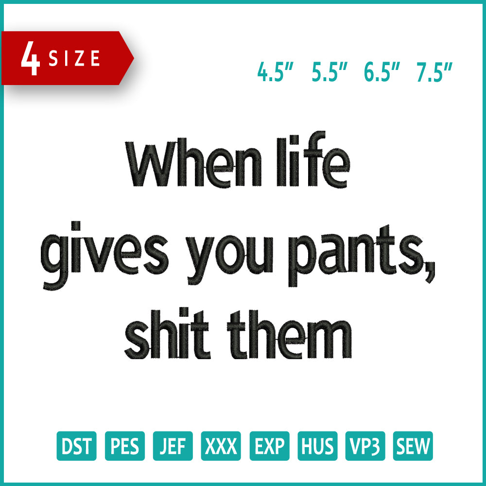 When life Gives You Pants Shit Them Embroidery Design Files - 3 Size's